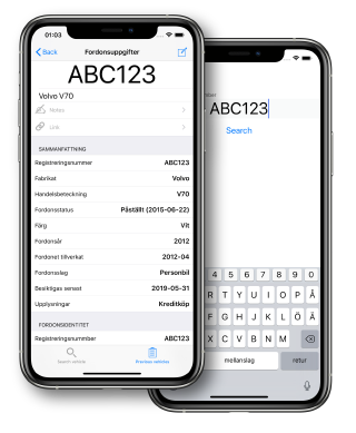 With Fordonsupplysningen you have quick access to vehicle information from the swedish car registry at Transportstyrelsen.